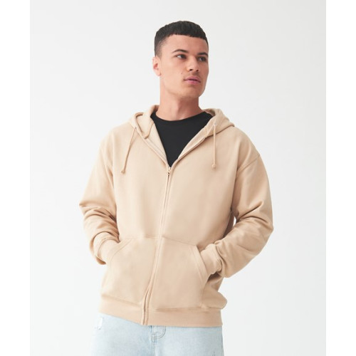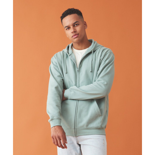 Full zip hoodie with a covered main zip with self fabric. Twin needle stitching detailing and double fabric hood with self coloured cords and kangaroo pouch pocket. Ribbed cuff and hem and self coloured twill tape puller. Worldwide Responsible Accredited Production (WRAP) certified production. Soft cotton faced fabric creates ideal printing surface. Simple tear out label makes it perferct for rebranding. Brushed inner fleece. WRAP certified. SEDEX certified. Vegan certified.